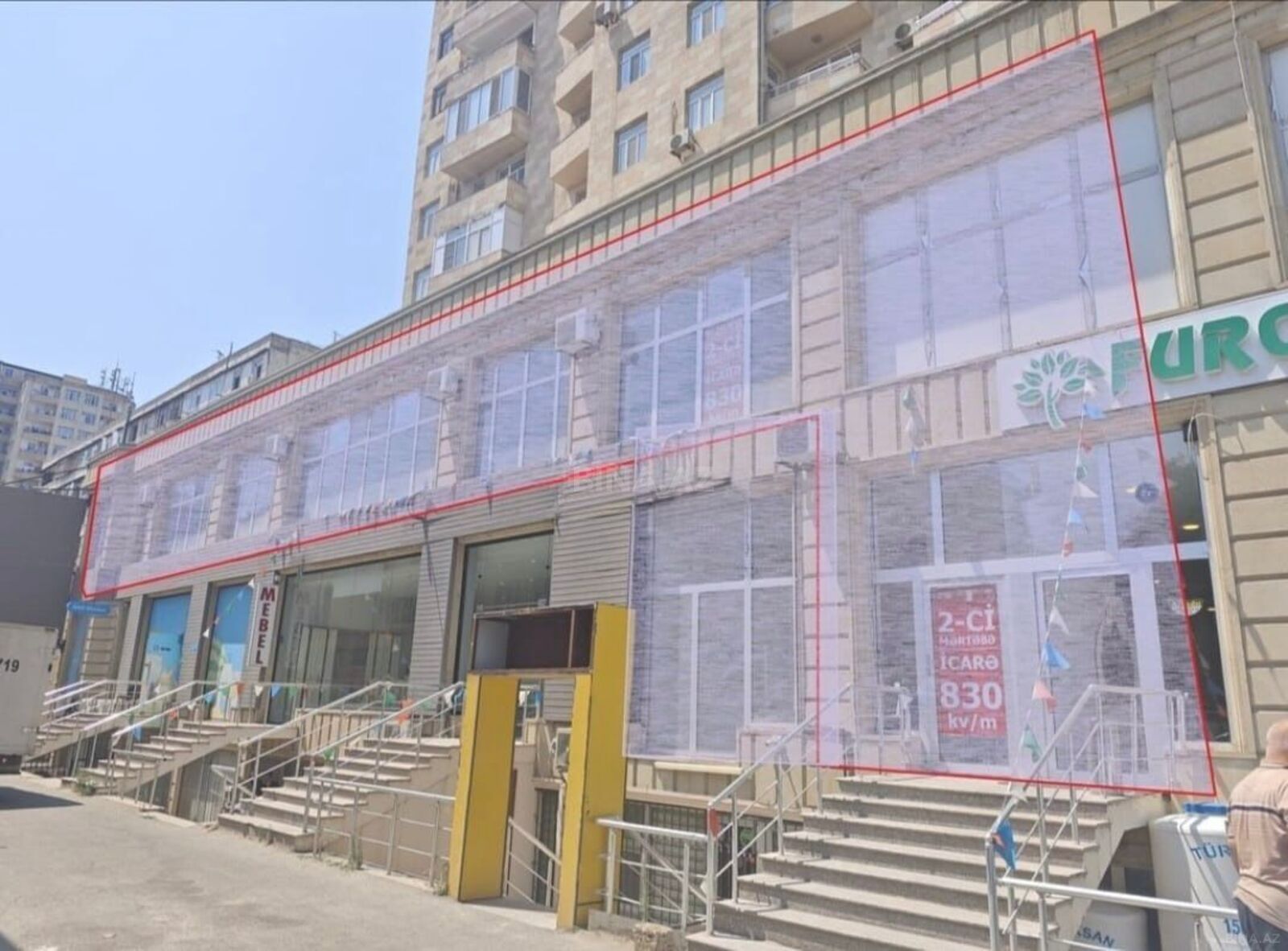 Obyekt Universal Siti MTK-in dəbdəbəli yaşayış kompleksində (şaxmat binasında) çox əlverişli bir yerdə - Məhəmməd Hadi küçəsində və birbaşa baxan, Sərhədçi idman komplekslə üzbəüz, Xalqlar Dostluğu metro stansiyasınının girişinə 200 metr və avtobus dayanacağından 20 metr məsafəsində yerləşir. Obyekt Neptun supermarketi, Soliton, Karaca, Embawood mebel, Qrand House mebel və digər maqazinlerinin sırasındadır, yaxınlığında digər tanınmış marka maqazinlər (Yağmur, Bellona, Saloğlu, Music Gallery) ve Accesbank var. Obyekt yeni super təmirdən çıxmışdır. Ümumi sahəsi 830 kvm. 1-ci mərtəbədə giriş qapısıdır, 2- ci mərtəbədə blokun içinə (təxliyə üçün) arxa qapısı var. Obyektin çox böyük və gözəl ...