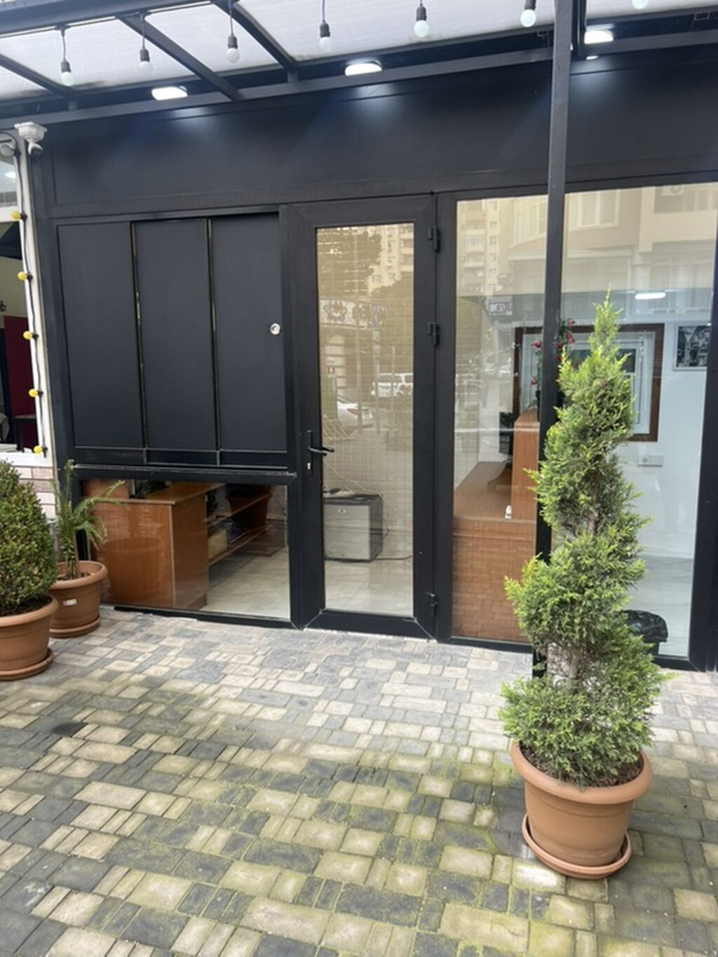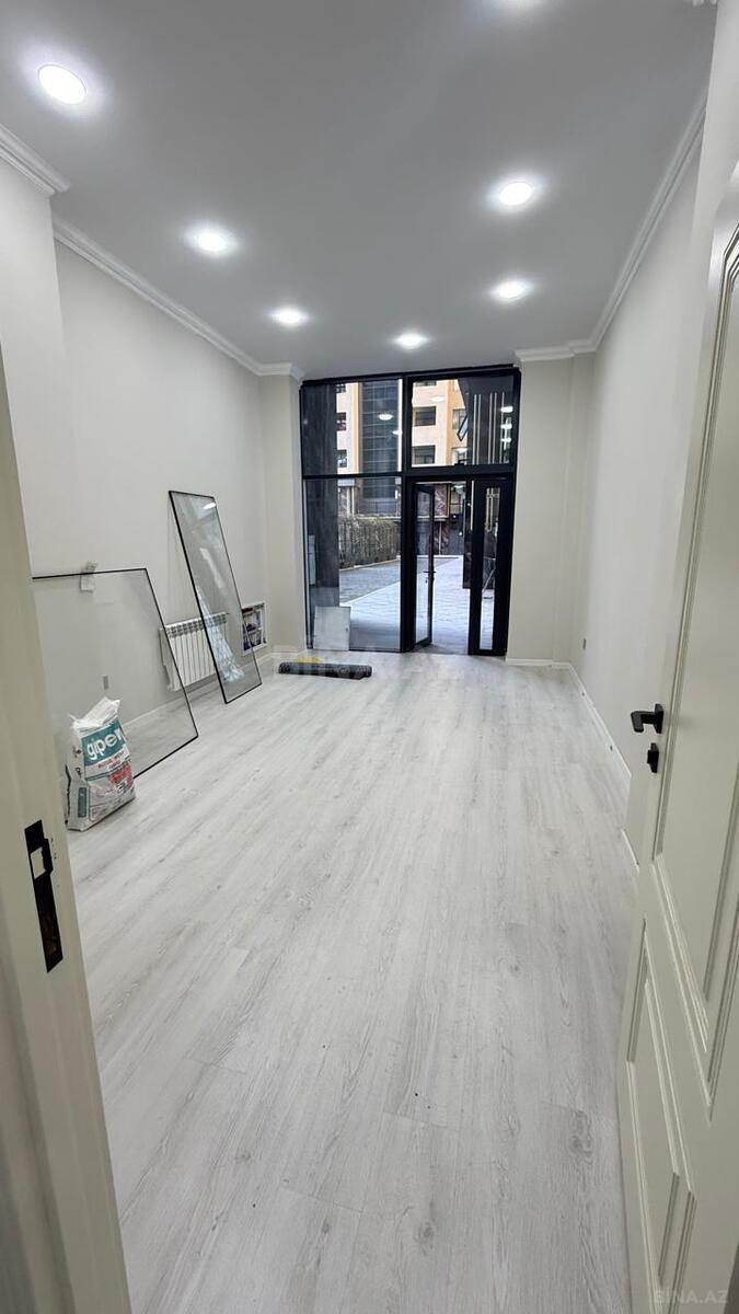 İcarəyə verilir – küçəyə vitrinli, şüşəbəndli kiçik kommersiya sahəsi/ofis Xüsusiyyətlər: - Giriş qapısı və böyük şüşə vitrini olan ön fasad, asma işıqlandırmalı örtülü giriş - Resepsiyon zonası: geniş taxta iş masası, alt hissədə əlavə rəflər, yanğından mühafizə balonu - Daxili interyer: ağ kafel/divar panelləri, mərmər naxışlı döşəmə, işıqlı tavan, təhlükəsizlik kameraları - Daxili rəf-sistemləri və saxlama dolabları - Elektrik rozetkaları çoxsaylı, internet/şəbəkə üçün marşrutizator quraşdırılıb - Kiçik məişət texnikası üçün yer: mini-soyuducu zonası, mikrodalğalı sobalar üçün rəflər - Pəncərə və vitrinlər sayəsində gün işığı alan açıq plan - Küçəyə çıxışı birbaşa olan, gediş-gəlişi yaxş ...