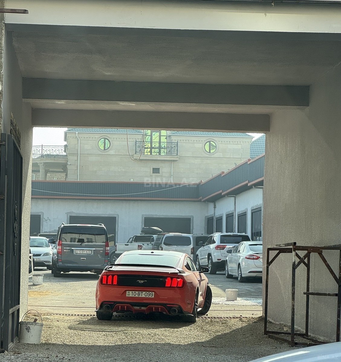Qapalı qaraj/obyekt sahəsi - Növ: Qapalı boks tipli qaraj və ya kiçik anbar/ustaxana kimi istifadə oluna bilən sahə - Giriş: İkiyarpaq metal darvaza, maşın üçün rahat giriş - Döşəmə: Kafel/plitə örtüklü - Daxili: Hündür tavan, elektrik işıqlandırması, içəridə köməkçi otaq/keçid qapısı olan bölmə - Ön hissə: Küknar daşla (brusçatka) döşənmiş həyət-sürüşmə yolu - İstifadə imkanları: Avtomobil dayanacağı, ehtiyat hissələri və avadanlıq üçün saxlanma, kiçik təmir-ustaxana, məişət anbarı və s. Məkan şəkillərdə göründüyü kimidir, darvazadan birbaşa daxilolma və daxildə əlavə işıqlandırma mövcuddur. Rahat manevr üçün geniş giriş sahəsi.