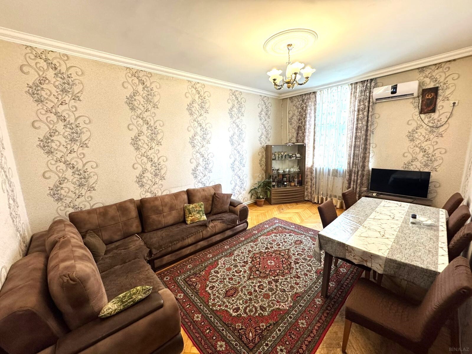 Продается 3-х комнатная квартира с дорогой мебелью в центре города, в Хатаинском районе, по улице Еременко, в престижном здании над «Ретро Палас». Здание газифицировано! Этаж 5/20. Общая площадь 162 кв.м. Очень дорогой ремонт. 2 санузла в отличном состоянии, душевая кабина, джакузи. Раздельные комнаты. Полы паркетные. КАТВ, стиральная и посудомоечная машины, отопительная система комби, 3 сплит кондиционерa. Качественная кухня со всей бытовой техникой в наличии. Коммуникации 24/24. Охраняемый двор, кодовый блок, 2 скоростных лифта "Sigma", место для парковки, подземный гараж, детская площадка. (Табриз) ------------------------------------------------ Yeni binada, şəhərin mərkəzində, Xəta ...