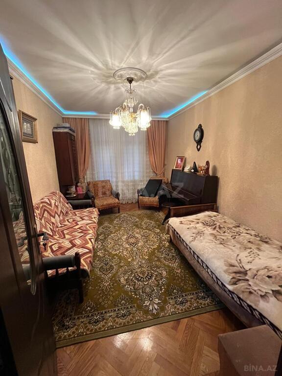 Şəhərin mərkəzində,Mərkəzi Univermaqın qarşısında,arxitektur layihəli daş binada,3-1 mərtəbəsində yerləşən,ümumi sahəsi 100 kv.m. olan,3 otaqlı mənzil satılır.Mənzil-zal-studiyadır, kombi sistemi,laminat döşəməsi,hündür tavanı-5 m.,var.Mənzilə giriş blokdandır.Binanın səliqəli fasadı,yerüstü parkinqi,ziyalı qonşuları var.Bina qoruğa aid olduğuçün,söküntüyə getməyəcək.Yaxınlıqda,DİN,Mərkəzi Univermaq,İçəri Şəhər metro stansiyası,İqtisad və Qərb Universitetləri,M.Ə.Sabir bağı,Axundov bağı,Fəvvarələr meydanı,Azərbaycan kinotetatrı,Ailəvi kafe-restoranlar,Bank filialları,Btavo,Araz,Spar,Sevimli Dad,Bazarstore super marketləri,Bülbül adına musiqi təmayüllü məktəb,132-134-150-189-190 məktəblər və ...