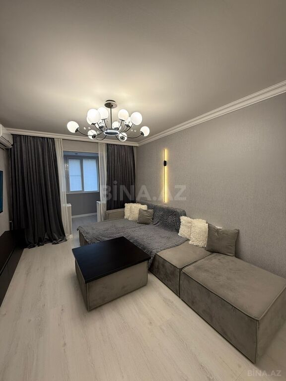 - Təsvir: Tam təmirlidir. Qaz su daimidir, 1 qonaq, 3 yataq otağı, böyük holl, böyük mətbəx,1 qarderob,1 xidməti otaq, 3 balkon, 2 san/qovşağı var. Bütün keramoqranitin alti isti poldur. Hər otaqda kondisioner var. Sürətli liftləri. Yanında supermarketlər, məktəblər, bağçalar, parklar və s. yerləşir