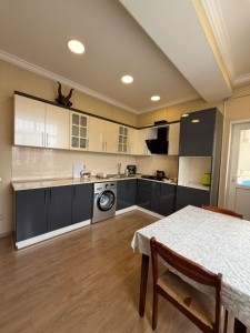 - Təsvir: Yeni təmirlidir. Əşyalı satılır. Qaz su daimidir. Yeraltı qarajı, geniş qapalı və 24/7 mühafizə olunan həyəti, oyun meydançası var. Şirkət haqqı 1% (alıcıdan).