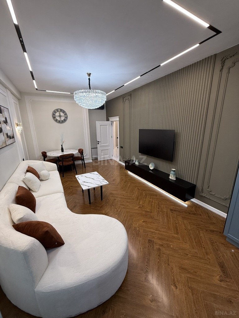 Zövqlə dizayn olunmuş interyer – təmiz və keyfiyyətli təmir, yüksək tavan (3.20 m)