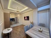 Divar kağızları "Zambaiti Parati" İtaliya, mətbəx mebeli, qapılar, qarderob, plintuslara kimi maşın boyası ilə işlənmiş, hamam və girişdə isti döşəmə mövcuddur. Bütün otaqlarda və hamamda individual audio sistetem quraşdırılıb.