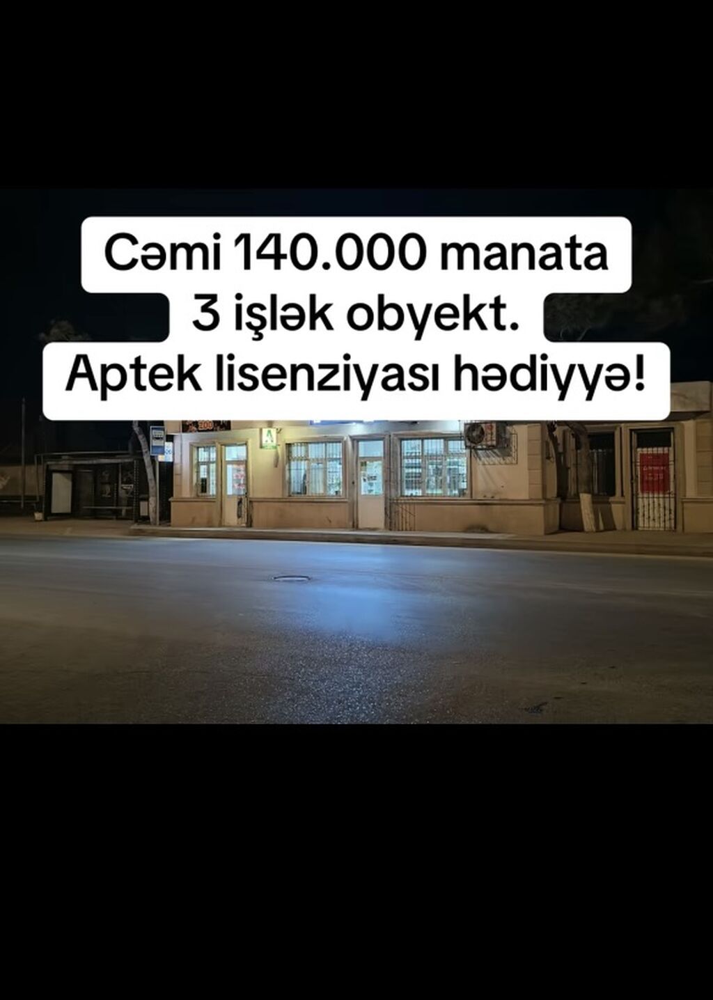 Satılır: Aptek və 2 əlavə ticarət obyekti (cəmi 3 işlək obyekt) Pirallahıda ucuz qiymətə 3 obyekt cəmi 120 minə 140 mindən düşüb aşağı Trendyol,zoomarket və aptek 3 obyektin birgə icarəsi 900 manatdır qiyməti isə 120 .000 manar Əlaqə: +994 70 230 72 34 ✅-Obyekt Köhnə artiomda yerləşir hazırki adı ilə Pirallahı rayonu, ✅-Yolun kənarında yerləşir, ✅-Laçın marketi keçdikdən sonra yolun sağ tərəfində (Yaşayış məntəsəqi,AzPetrol,Məktəb və sayr) yerləşir ✅-3 obyekt biryerdə yanaşı yerləşir ✅-Aptek, Zoo market, trendyol 3-ü biryerdə satılır ✅-faktiki ölçüsü 80kv ✅-kupçada 57 kv qeyd olunub ✅-qiymət: 140.000 ✅-Arenda qiyməti 900 manat 3 ü biryerdə ✅-Aptek lizensiyası hədiyyə verilir