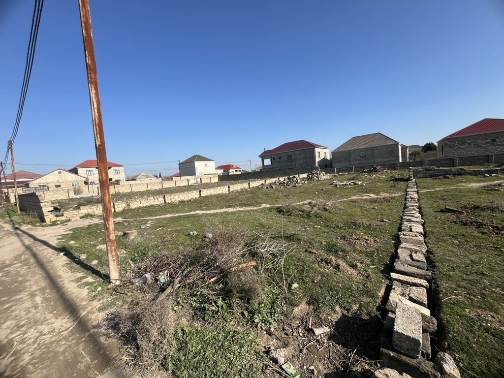Torpaq sahəsi – yaşayış məhəlləsində. - Düz relyefli, kvadratabənzər formaya yaxın geniş sahə - Dörd tərəfi daş hasarla hissə-hissə çəkilmiş, qonşu evlərlə əhatəli - Məhəllə daxili yol – bərkidilmiş torpaq yol, elektrik xətləri və dirəklər kənardan keçir - Ətrafda yeni tikili fərdi evlər, sakit və məskunlaşmış küçə - Sahənin daxilində bünövrə-daş materialları mövcuddur (faydalı tikinti ehtiyatı) - Giriş qapısı üçün yer ayrılıb, küçəyə birbaşa çıxış - Mənzərə açıq səma, günboyu günəş alan açıq sahə Fərdi yaşayış evi və ya ikimərtəbəli tikili üçün əlverişli plan. İstəyə uyğun planlama və abadlaşdırma üçün geniş imkanlar.
