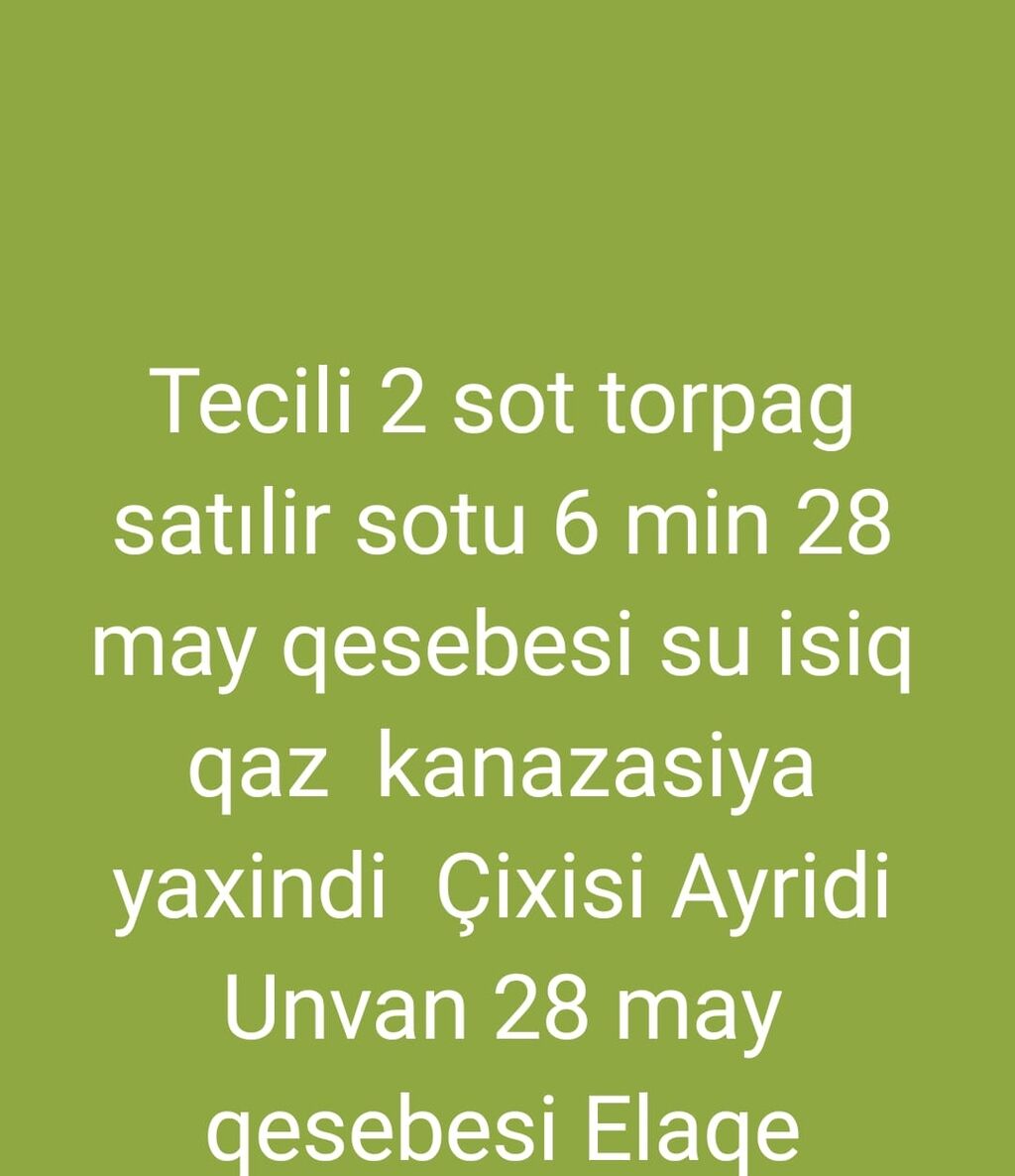 Çay və bulaq kənarı. Mican hotel ailəvi istirahət mərkəzinin yaxinliğinda. Sənəd 2007 təyinatlı bələdiyə. Kupça verilir. Əlaqə Əsasən whatssappla əlaqə saxla.