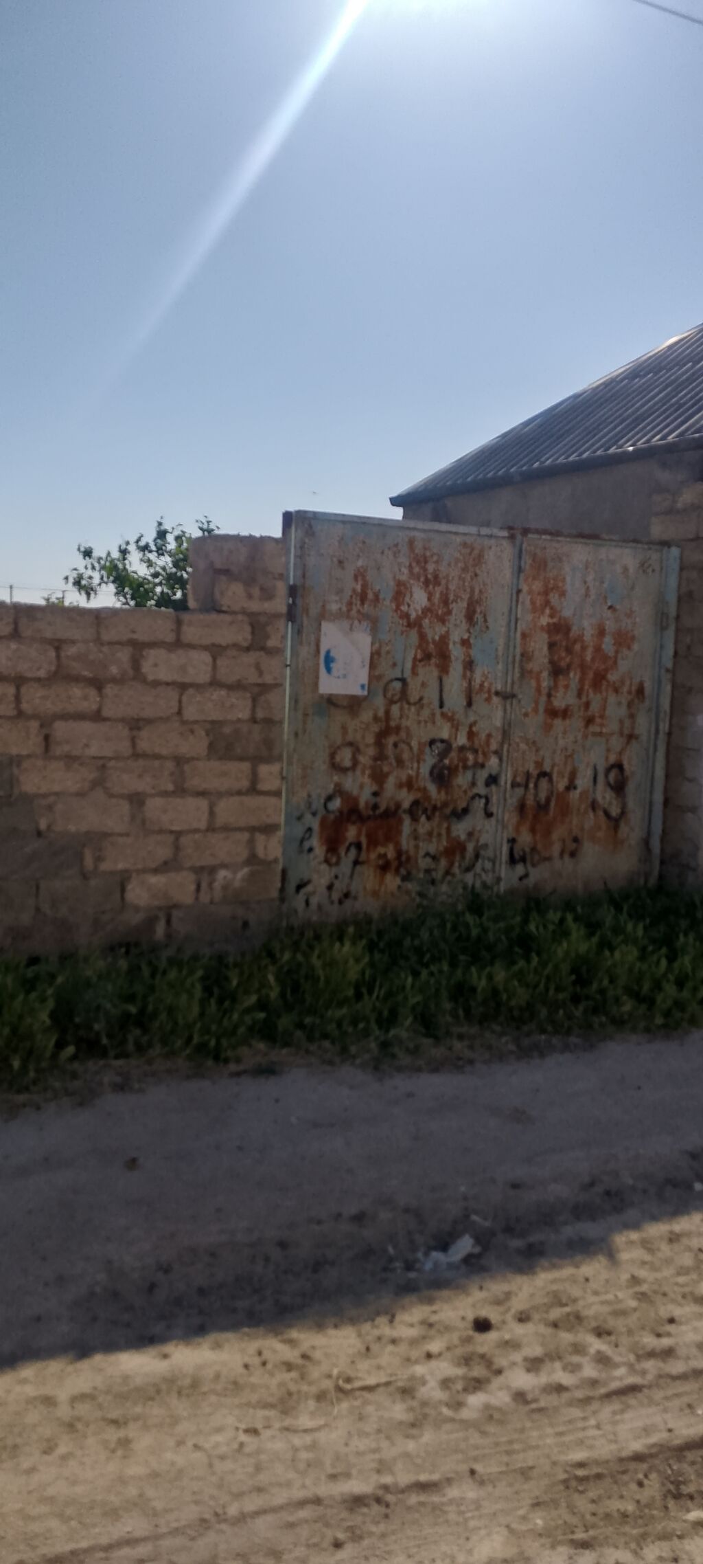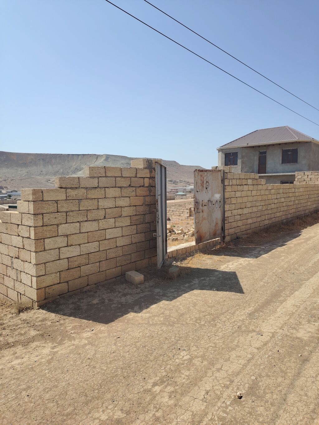 Torpaq sahəsi – daş hasarla əhatələnmiş, dəmir darvazalı, küçəyə çıxışı olan mülk. Xüsusiyyətlər: - Hündürlükdə bərk daş hasar, perimetr tam örtülüb - Geniş ikiqanadlı metal darvaza - Küçəyə bitişik, rahat giriş-çıxış imkanı - Qonşuluqda yaşayış evləri - Küçə boyunca elektrik xətləri və dirəklər mövcuddur - Qaz boru xətti küçədən keçir - İnternet/kommunikasiya qutuları quraşdırılıb - Sakit məhəllə, torpaq yolu olan küçə - Düz relyef, fərdi yaşayış evi tikintisinə yararlı Birbaşa hasarlı həyət sahəsi axtaranlar üçün uyğun seçimdir.