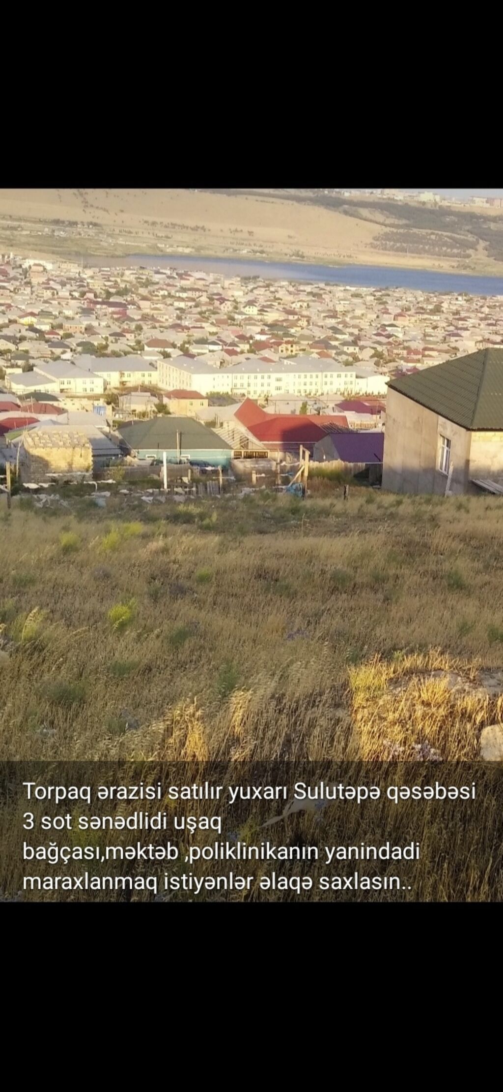 Yuxarı Sulutəpə qəsəbəsində torpaq sahəsi. - Ölçü: 3 sot (sənədlidir). - Yerləşmə: uşaq bağçası, məktəb və poliklinikanın yaxınlığında. - Ətraf mühit: yaşayışlı məhəllə, şəhərə panoramik mənzərə. - İnfrastruktur: yaxınlıqda sosial obyektlər, kommunikasiyalara çıxış imkanı.