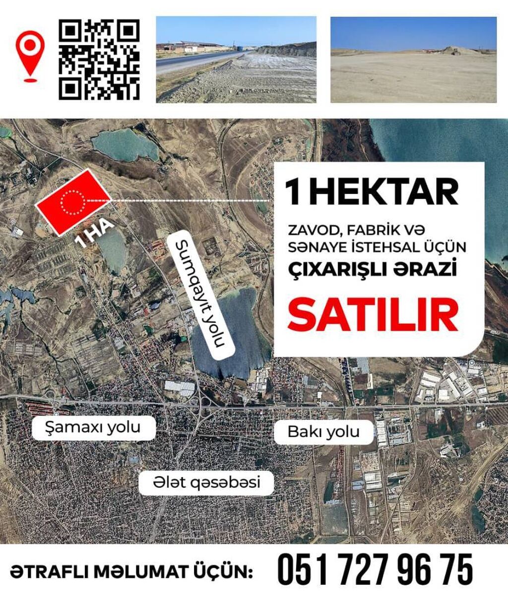 Satılır – 1 Hektar Çıxarışlı Torpaq Ünvan: Abşeron rayonu, Aşağı Güzdək qəsəbəsi Sahə: 1 Hektar (10,000 m²) Sənədləşmə: Çıxarışlı (kupça) ⚙️ Təyinat: Sənaye, nəqliyyat, rabitə, müdafiə və digər təyinatlı torpaqlar Mülkiyyət forması: Xüsusi mülkiyyət --- Torpağın xüsusiyyətləri: Əsas magistral yollara yaxın yerləşmə – Bakı, Sumqayıt, Ələt və Şamaxı istiqamətində rahat çıxış. Zavod, anbar, istehsal müəssisəsi və digər sənaye obyektlərinin tikintisi üçün ideal sahə. Sənədlər tam qaydasındadır, hüquqi problemləri yoxdur. Rahat logistika və geniş infrastruktur imkanları. --- Əlavə üstünlüklər: Geniş sahəsi ilə böyük layihələr üçün əlverişli. Ərazidə sənaye və istehsal üçün əlverişli ...