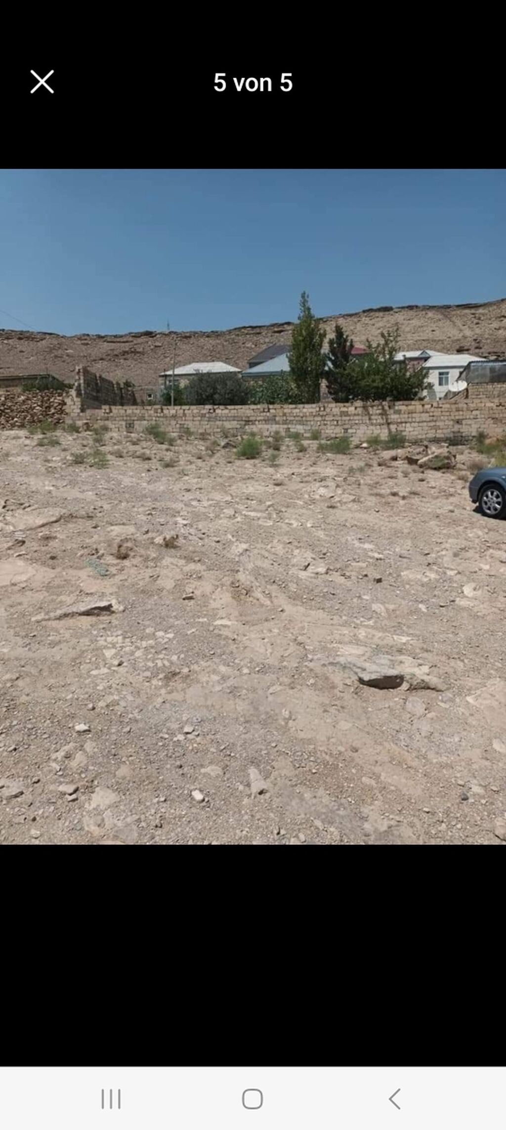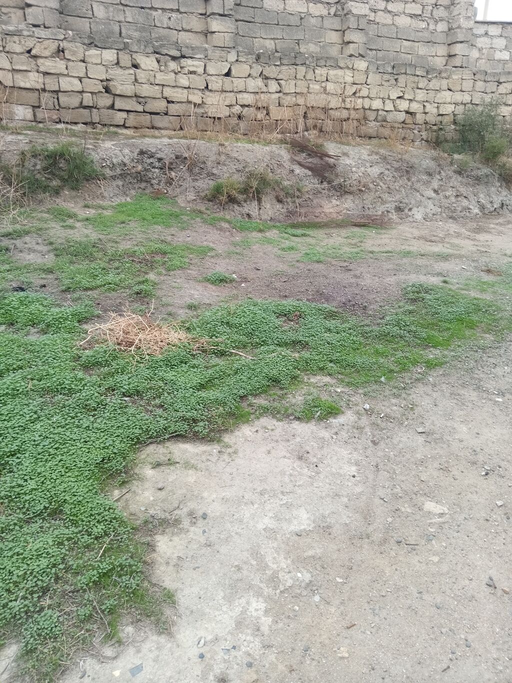 Satış üçün torpaq sahəsi - Təyinat: fərdi yaşayış evi üçün. - Relyef: yüngül maili, qayalı-torpaq örtüyü; səthdə xırda kolluq və daşlıq. - Hündür mövqe: ətraf məhəlləyə və şəhərə açıq panorama. - Hasar: sahənin bir neçə tərəfi daş hasarla çevrilib. - Kommunikasiya yaxınlığı: qonşu evlərdə elektrik, su və qaz xətləri görünür; küçə boyunca elektrik naqilləri keçir. - Mühit: sıx məskunlaşmış yaşayış massivində, ətrafda tikili fərdi evlər var. - Giriş: avtomobil yolu ilə yaxınlaşma mümkündür; sahəyə yan yol açılır. İmkanlar: - İki mərtəbəli və ya mansardlı ev layihəsi üçün əlverişli sahə - Teraslı həyət, həyət-bağ və yardımçı tikililər üçün geniş imkan - Yüksək nöqtədən şəhər mənzərəsi.